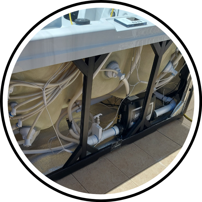 A robust base is essential for the longevity of any spa. All Crystec Spas feature a custom-moulded base that is fully sealed, preventing moisture, foreign objects, or wildlife from damaging the interior workings of the product. The base is designed to work in conjunction with the acrylic shell of each individual model, resulting in a completely sealed unit.