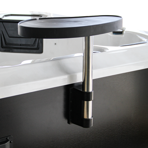 - Swivels out for towels or conveniently folds flat against the spa side when not in use